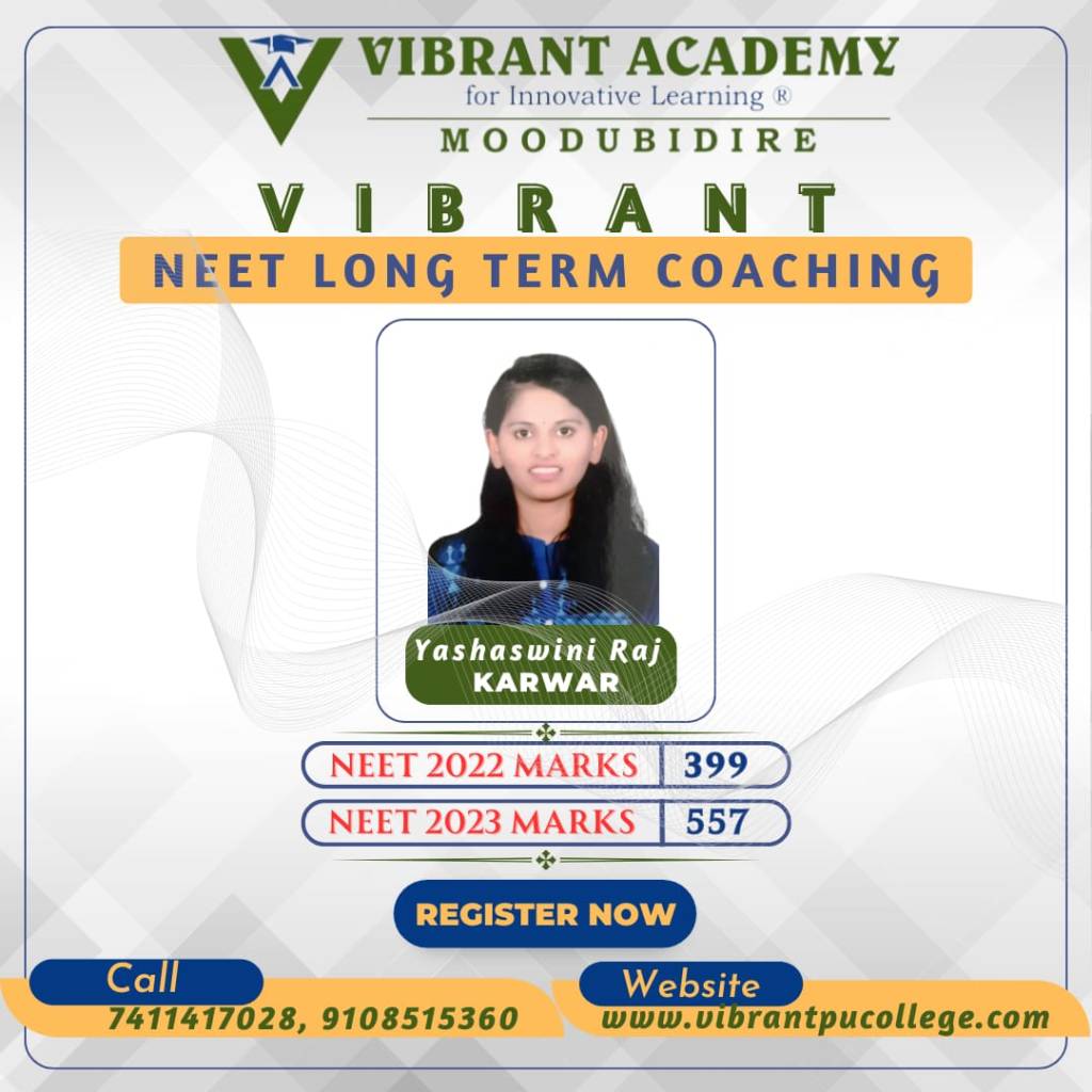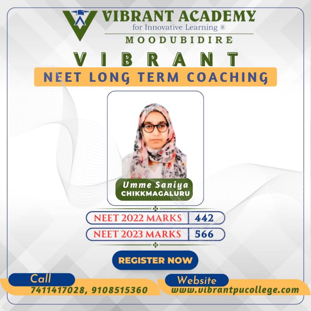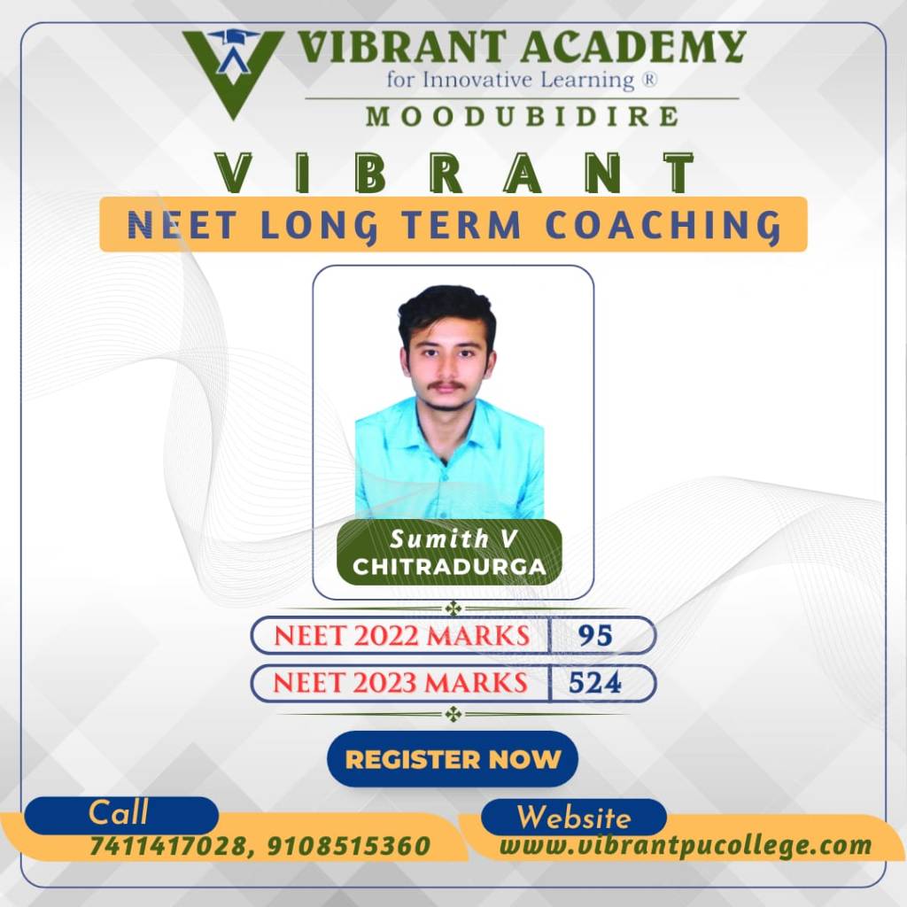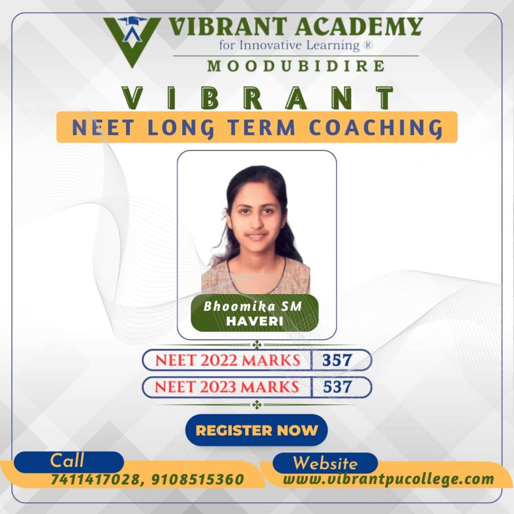 In the very first year Vibrant Academy for Innovative learning Moodubidire has phenomenal results in NEET 2023 and brought revolution in the history of NEET long term coaching or repeaters batch.