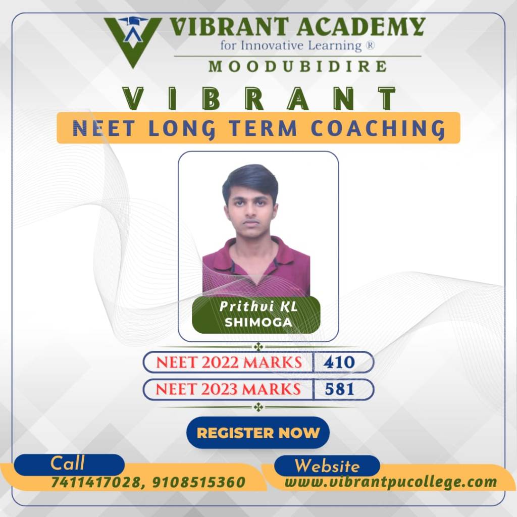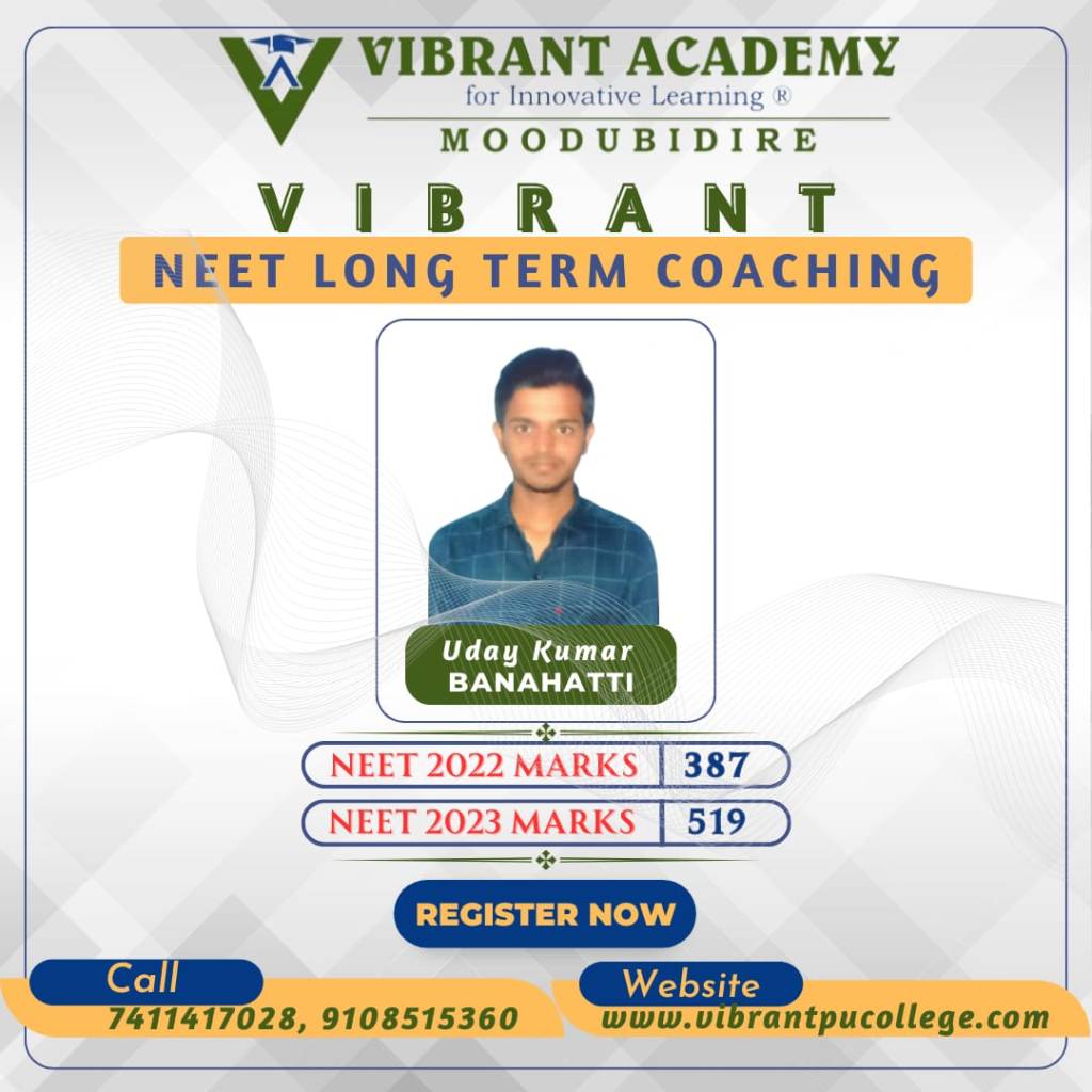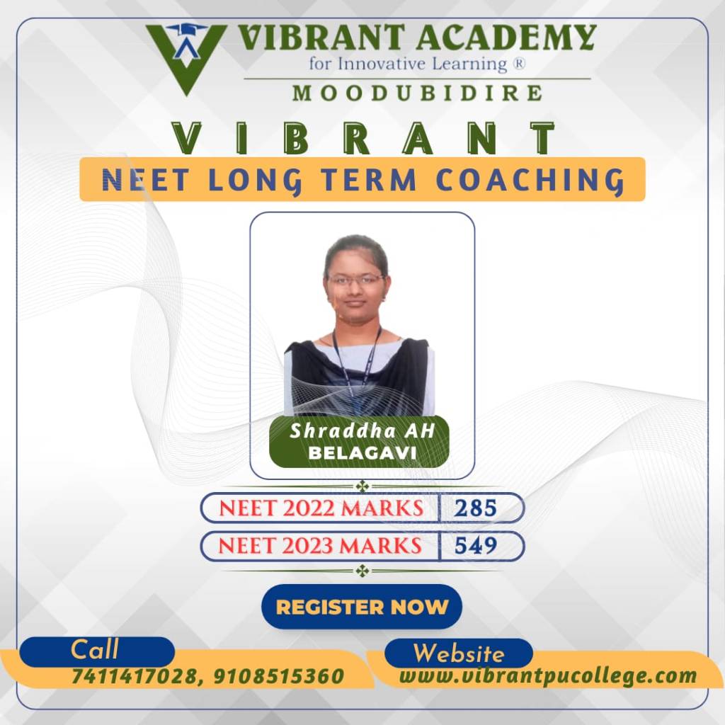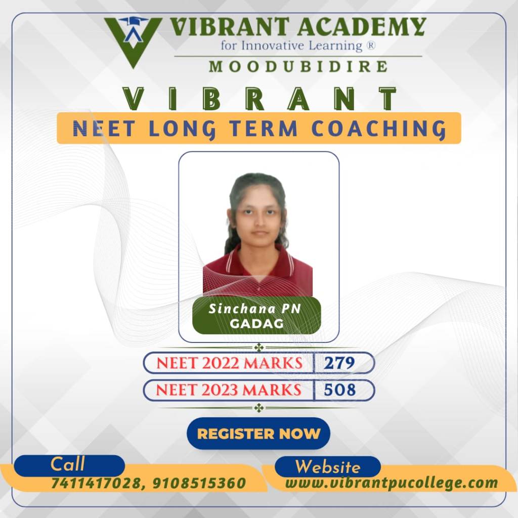 In the very first year Vibrant Academy for Innovative learning Moodubidire has phenomenal results in NEET 2023 and brought revolution in the history of NEET long term coaching or repeaters batch.
