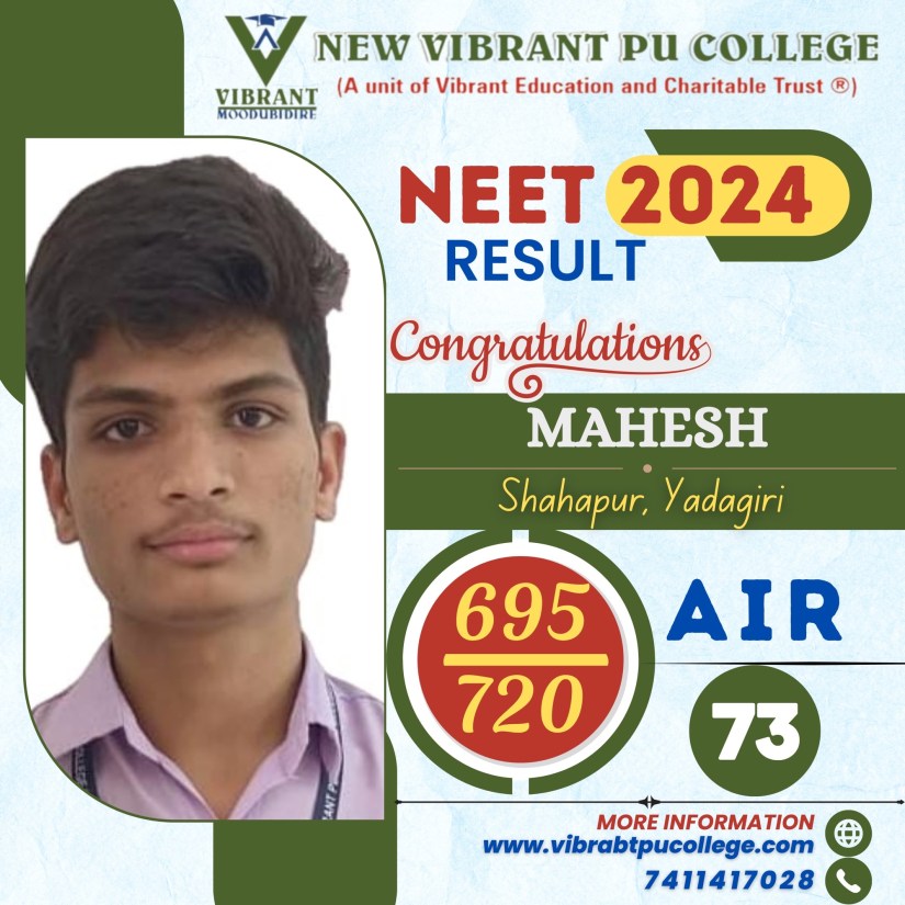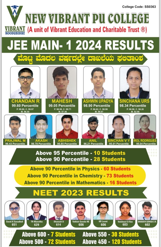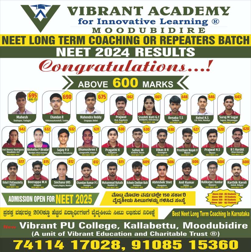 The team of experienced lecturers in Vibrant have an excellent track record of producing top ranks consistently throughout their career. This makes Vibrant the best residential science PU college in Karnataka.
